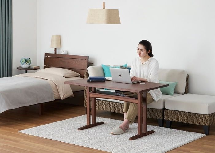 1人暮らしでテレワークなども多い場合は、食事だけでなく作業もこなせる、ゆったりサイズのダイニングテーブルがおすすめです。作業スペースとしても十分な広さと安定感のあるテーブルを選ぶことで、食事も仕事も快適にこなせます。