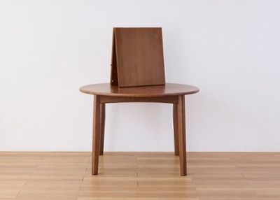 丸形ならではのやわらかな印象はそのままに、必要なときだけサイズを広げられるのが魅力。普段はコンパクトに使いつつ、来客時にはゆとりのあるスペースを確保でき、見た目と機能性を両立できます。