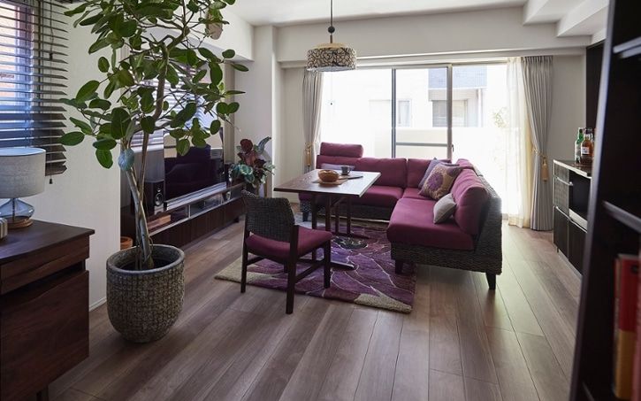 1LDKでの一人暮らしは人が集まれる家、家で仕事ができる家など、様々な過ごし方が可能です。こちらのコラムでは、一人暮らし女性の方がプライベートと仕事、友人との時間を快適に過ごせる家具選び・レイアウトにこだわったインテリア実例をご紹介。女性の一人暮らしだから可能な、自分が大好きな家具のテイストや色に合わせて内装を選ぶことで、落ち着きと華やかさがある部屋に。マルチに暮らせるソファダイニング(コーナーソファ)を主役に、パープル×グレー×ダークブラウンでカラーコーディネートした、女性ならではの部屋作りを是非ご覧ください。