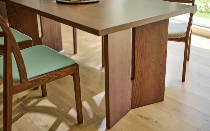 正方形や長方形のダイニングテーブルは、直線的なデザインで部屋の角や壁に沿って配置しやすいのが特徴です。コンパクトな空間でも無駄なく収まり、ゆとりのある快適な暮らしを叶えてくれます。