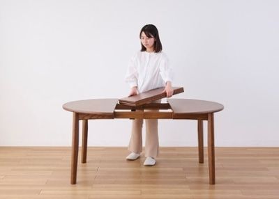 空間に柔らかい印象を与える「エン・伸長式ダイニングテーブル」