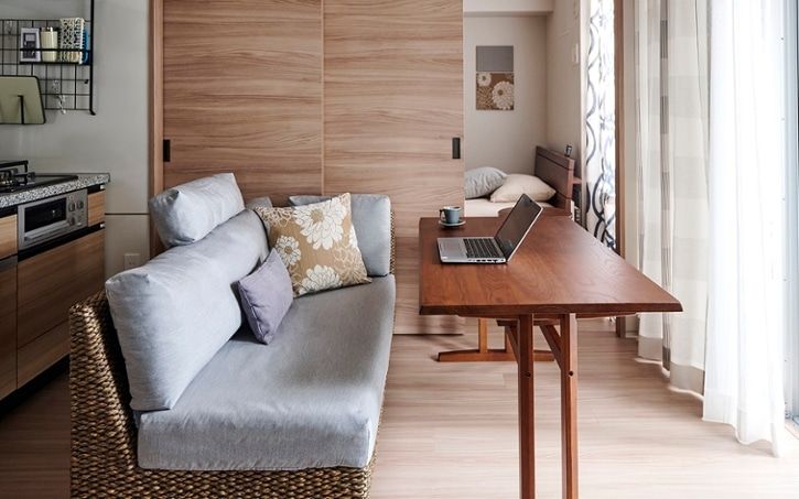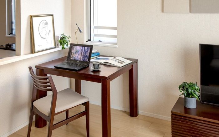一人暮らしの空間はスペースが限られるため、ダイニングテーブルとデスクを兼用するのも一つの方法です。家具の数を減らせるため、空間にゆとりが生まれ部屋を広く使えます。