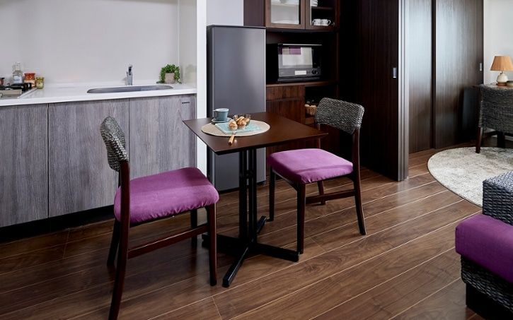ワンルームや1Kで6畳以上の広さがあれば、スペースにはある程度の制限があるものの、テーブルのサイズを工夫することで、ゆとりのある快適なダイニングスペースをつくることができます。