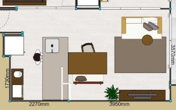 家具を配置したら、ファブリック・小物を置いてカラーコーディネートを行います。アクセントカラーをプラスするなど全体のバランスを見て配色できるのでイメージが湧きやすく、おしゃれにまとまります。