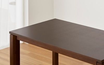突板の家具は丸太を薄くスライスしたシートを、合板や繊維板に貼り付けたものです。木目が美しく狂いが少ないため、伸長式などの特殊なデザインの家具などと相性が良い素材です。