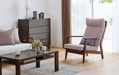 また、存在感のある無垢材の1人掛けソファはコーディネートのアクセントにもなるので、部屋のインテリア性を高めてくれるでしょう。