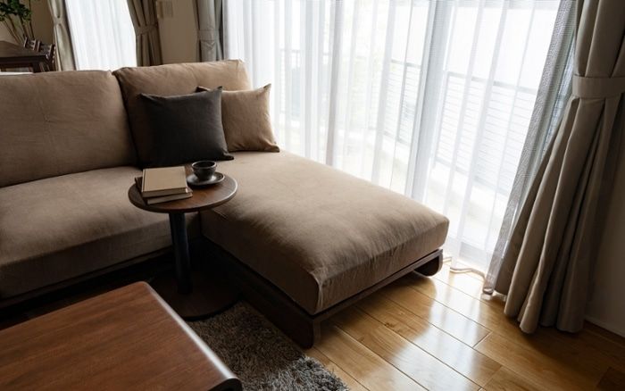 無垢材ソファを直射日光から守るため、窓際に設置する場合はカーテンなどを使用するのがおすすめです。中には紫外線をカットする機能のカーテンもあり、紫外線による影響を軽減することができます。