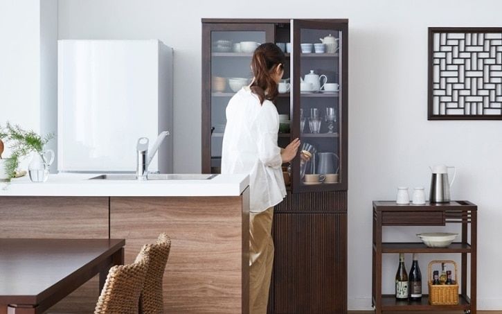 食器やグラスを多く収納したい場合は、上下ともそれらの収納に適したカップボードタイプがおすすめです。お気に入りのアイテムをガラス戸へ、飾るようにレイアウトできます。