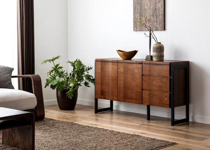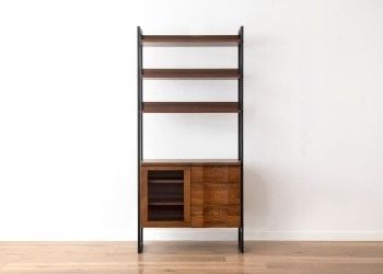 見せるor隠す収納を選べるシェルフ・キャビネットタイプのハーモシリーズ。無垢材とアイアンを組み合わせたスタイリッシュなデザインで、おしゃれな空間を演出してくれる収納家具です。