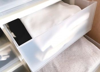 大きい収納物には、引き出し一つのサイズが大きいチェストが適しています。段ごとに種類を分けると管理がしやすいですね。
