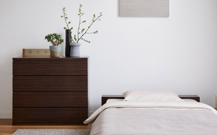 使用頻度が低めのベッドリネンや季節物の衣類・来客用の布団などを収納しておくのにぴったり。引き出しなのでスムーズに出し入れできます。