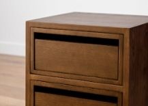 小さい収納物には、コンパクトな引き出しや開き戸が付いたキャビネットがおすすめ。隠す収納ですっきり見せられます。