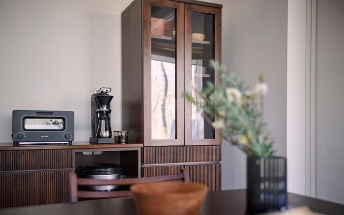 開き扉にガラスを採用したガラスタイプ。お気に入りのものを飾るショーケースとして魅せる収納が楽しめるだけでなく、開放的な印象も生み出します。