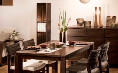ダイニングでは食事だけでなく、仕事や宿題などの作業をすることも。マルチで過ごす空間だからこそ、さっと片付けて切り替えできると快適ですね。