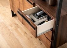 ウッドドロワーをプラスして下段は隠すタイプの収納に。深さがあるので様々な物を整理整頓可能です。