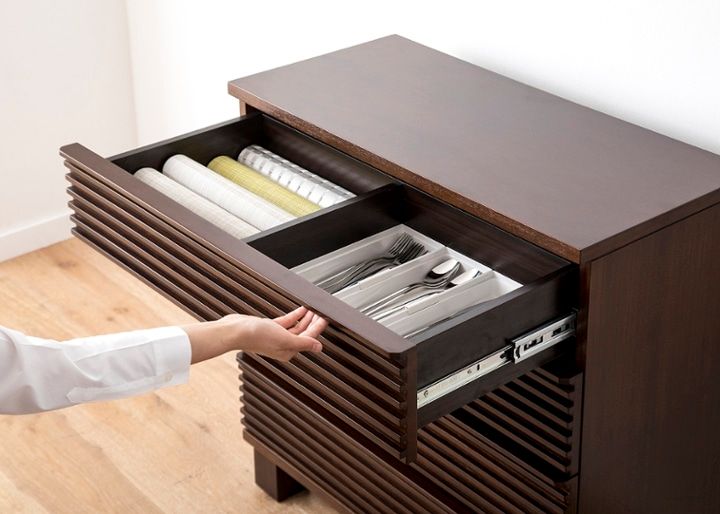 引き出しや扉付きの収納棚。収納家具の中に物をしまうため、ホコリが付きにくく保管力に優れています。