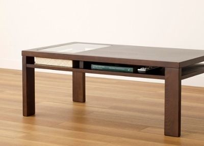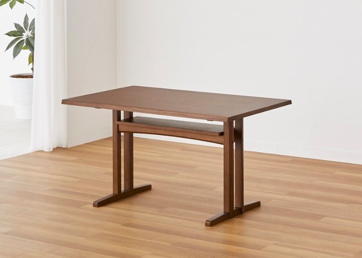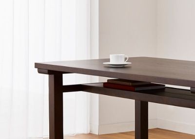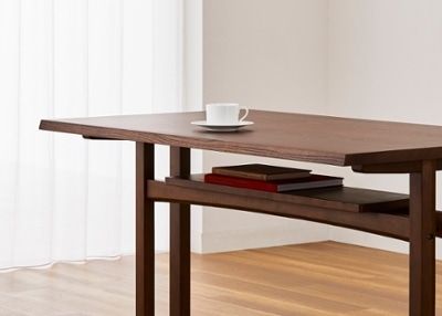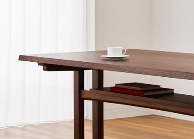 天板の下に棚板がついており、ダイニングテーブルやローテーブルで最もポピュラーなタイプ。オープンなので、物を出し入れしやすいのが特長です。