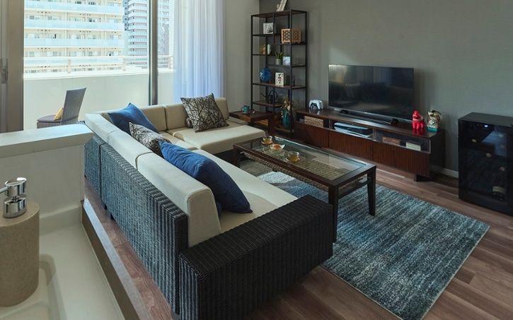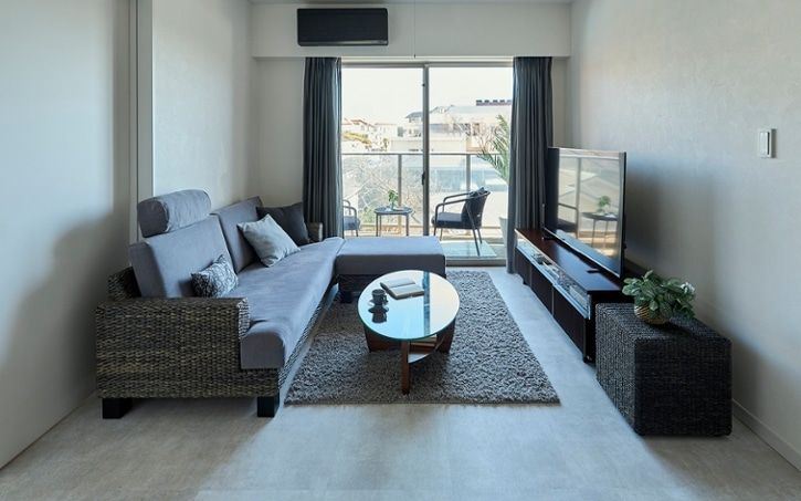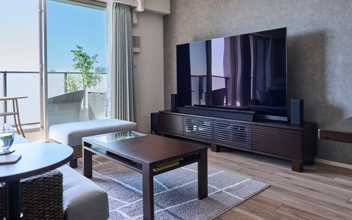 ■ディスプレイ×素材感でリゾートを演出するリビング