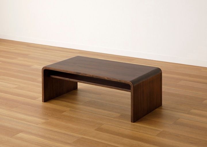 直線的な家具で統一したコーディネートに、緩やかな曲線のデザインでリラックス感を与えてくれるローテーブル。無垢材ならではの印象的な木目が、シンプルなインテリアのおしゃれなアクセントに。