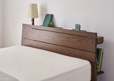アッシュ無垢材を贅沢に使用したヘッドボード。無垢材でしか感じることのできない質感と木目、温もり感のあるグレインブラウンカラーに癒されながら、一日の始まりと終わりの時間をゆったり過ごせます。