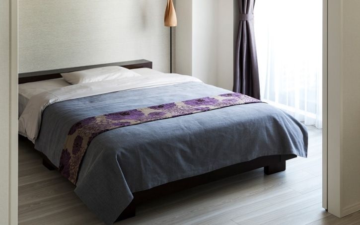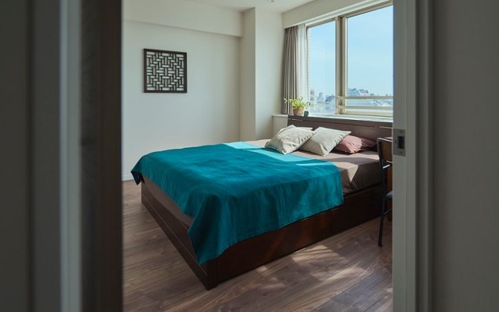 部屋を広々と見せる低めのベッドは、寝室に開放感やゆとりを与えてくれます。また、床とベッドが近いため、ベッド周りで床座の暮らしも楽しめるでしょう。