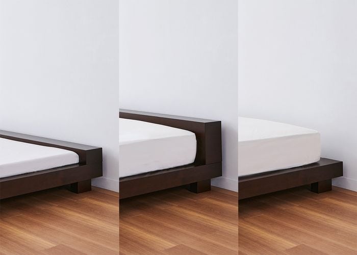 フレームの上にマットレスを乗せるタイプの構造なので、2台並列してキングなどの大きなサイズで使用可能。ヘッドボードも直線的なデザインなので、ぴったりと繋げられます。