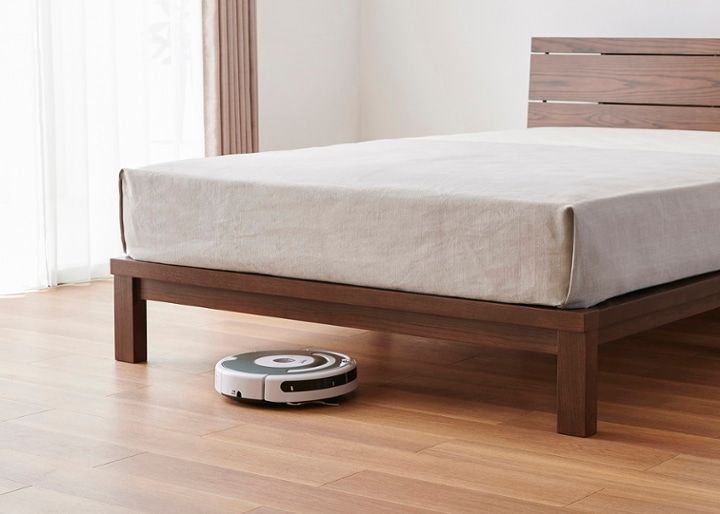 チーク・ローベッドは元々背の低いロースタイルのベッドですが、脚の有無によって高さを調整することができます。また、脚有りの場合は10cmの高さがあるため、掃除機やお掃除ロボットも使えるため、通気やメンテナンスが気になりがちなローベッドでも快適に暮らせるでしょう。