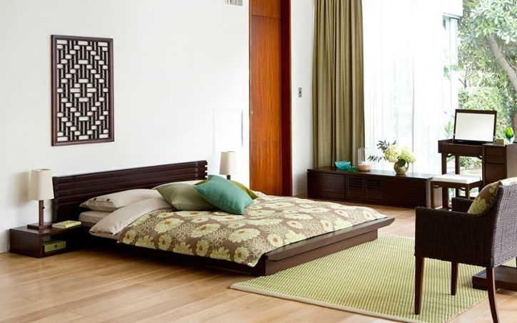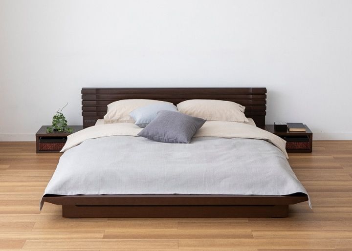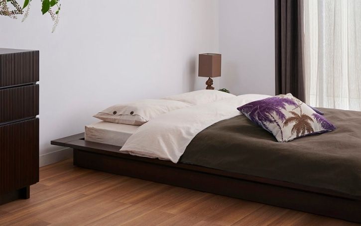 コト・ローベッドは、海外のリゾートホテルのような洋風の雰囲気だけではなく、日本ならではの和の佇まいにも馴染んでくれる点が魅力。ミニマルで洗練されたデザイン、穏やかなダークブラウンの色合いは、畳の部屋とも相性抜群です。