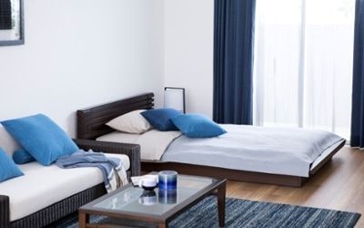 「10畳」沖縄の碧い海を連想させるブルーが映える寝室