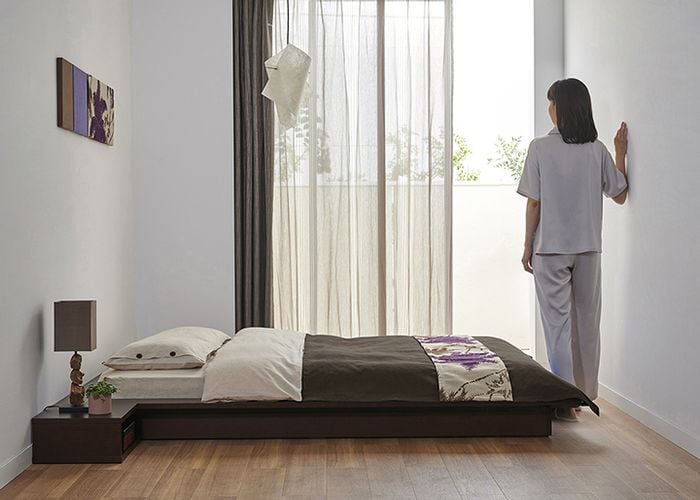 掃き出し窓の前にベッドをレイアウトする間取りの場合でも、コト・ローベッドであれば高さがないため、窓への抜け感が生まれるだけでなく、心地良い外光をしっかり取り込める寝室をつくることが可能です。