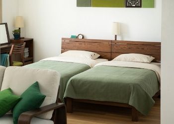 一般的には、ベッドを2台置くと寝室の生活動線は取りにくくなってしまい、快適に過ごすためのサイドテーブルを配置できないことも。