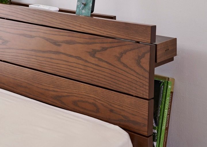 しかし、ムク・ベッドならヘッドボード裏に充実した収納がついているため、サイドテーブルを置かなくてもゆったりと過ごせる寝室づくりを叶えられます。