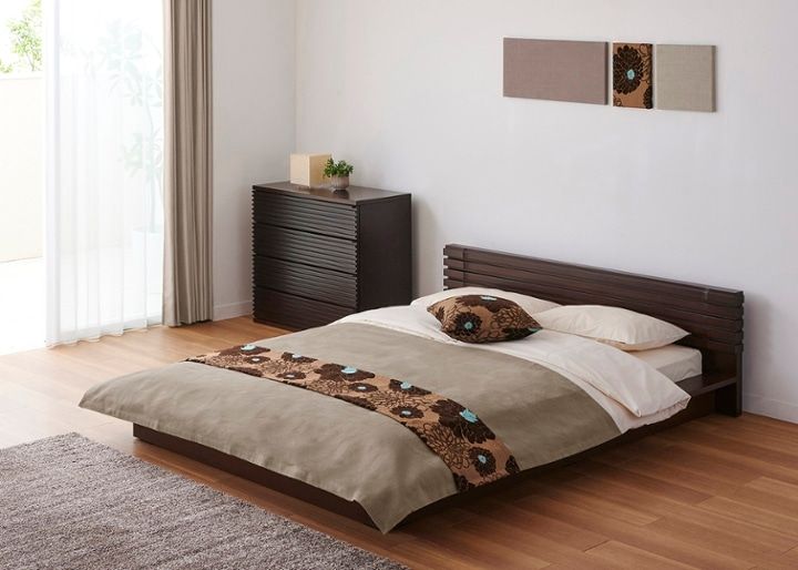 寝室を広く見せる「チーク・ローベッド」とファブリックアイテムの組み合わせ例を紹介します。開放的かつシンプルなデザインのローベッドを主役の寝室を、多彩なファブリックで自由に様変わりさせてみましょう。
