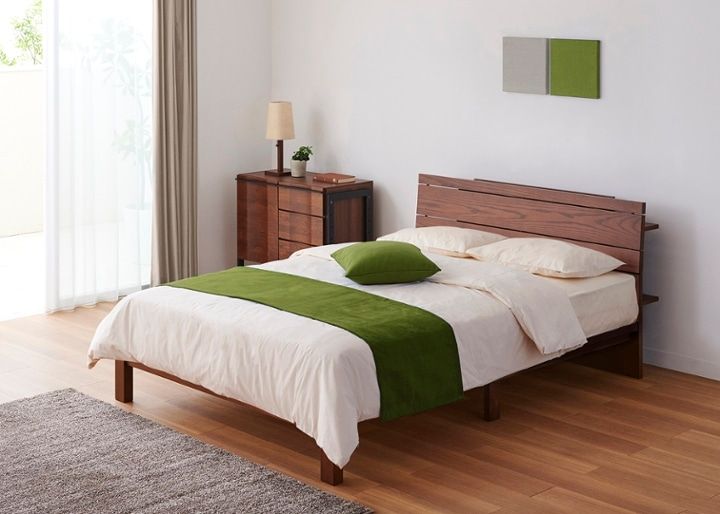 ミニマルなデザインと開放感が魅力の「チーク・ローベッド」に合わせることが多い、人気の色や柄、相性のよい組み合わせ例です。寝室づくりの際によろしければ参考にしてください。