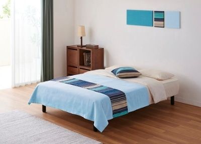 一般的な「脚付きマットレス」とファブリックアイテムの組み合わせ例を紹介します。シンプルな脚付きマットレスが主役の寝室を、多彩なファブリックで自由に様変わりさせてみましょう。