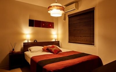 ベッド周りを飾ってリゾートライクな寝室に。