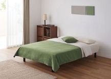 ベッドスプレッドを使う場合、寝る時は外すのか敷いたままにするのか悩む方も。ご利用されている時の季節やサイズ感にもよるので、お客様の好みでご利用ください。(下記例は奥行1300サイズ)