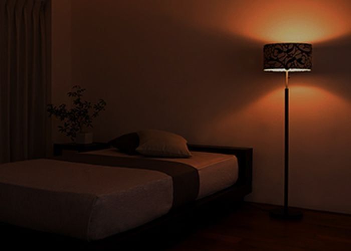 真っ暗だと眠れない方は、フロアランプの豆電球がおすすめ。人は真っ暗だと熟睡しにくい傾向にあるのは、原始時代から焚火のほのかな灯りがあるほうが安心して寝られるDNAが少なからず存在するためです。