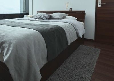 ベッドなどの大型家具は長年置き続けているとフローリングに凹みや傷がつくことも。ラグをベッドの下に敷いておけば、そのような跡がつきにくくなります。