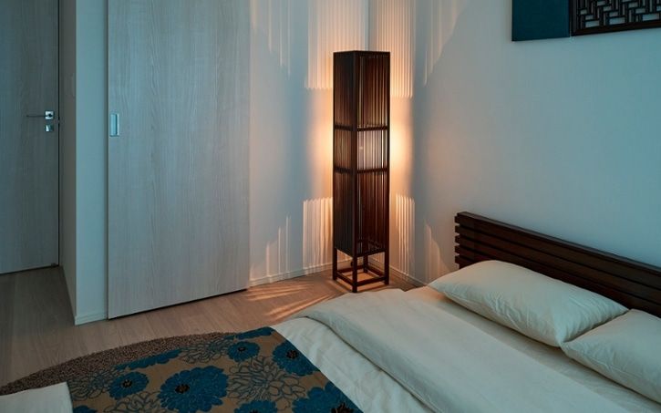 フロアランプの場合、テーブルランプと異なり置く場所の制限があまり無いのも特徴です。ベッドの横だけでなくキャビネット脇、デスクやドレッサー脇の作業スペースなど、お好みの場所に配置できます。