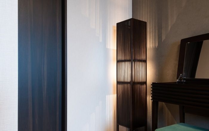 部屋の角に置くことで、灯りが壁の2面に広がって幻想的な雰囲気を味わえるのがフロアランプの魅力。縦・横ライン、格子状、編み込みのデザインは、特に光の演出効果を得ることができるでしょう。