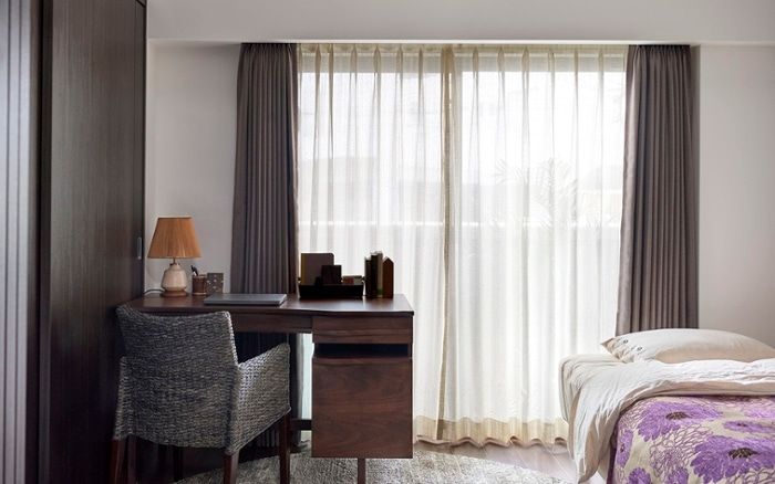 寝室をワークスペースにしているなど、明るい時間帯に寝室で過ごす時間が長いライフスタイルの方であれば「レースカーテン」にもこだわりたいところ。日中に在宅している時は、窓を開けたりレースカーテンを使うことが多いため、好みの色合いや柄を用いることで自宅で過ごす時間がより充実します。