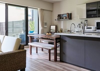 忙しい朝食や就寝前の晩酌など、食事後の片付けが億劫に感じることがありますが、キッチンカウンターなら目の前がシンクなので片付けも楽々。気軽に過ごしたいという希望にフィットしてくれます。