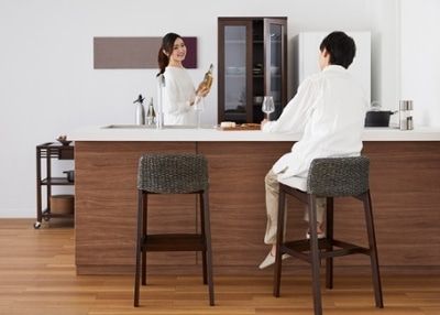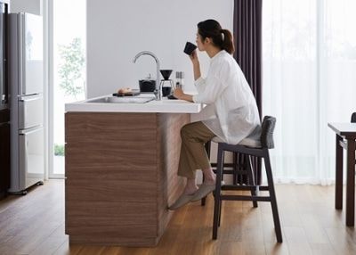 カウンターチェアは、家事をしている人ともコミュニケーションがとりやすいため、リビングダイニング以外にも家族やパートナーと楽しいひと時を過ごせる場所を生み出してくれます。