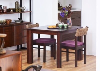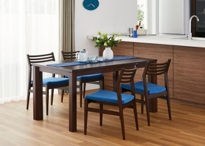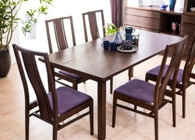 ダークブラウンのテーブルと合わせることで、メリハリのある空間に。華やかな印象に仕上がります。