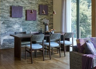 次に、天然素材を編み込んだチェアを紹介。編み込みでしか表現できない立体的なフォルムや素材感の温かみなど、自然な雰囲気かつおしゃれなダイニングにされたい方にぴったり。別荘など特別な空間にもマッチします。