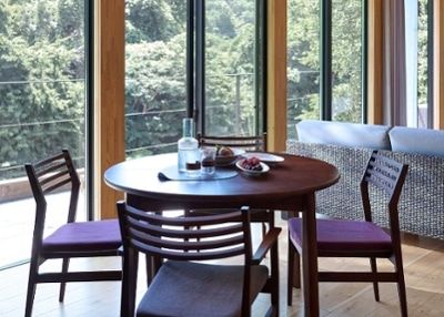 ハイバックの背もたれでテーブルを囲うことでゾーニングがされ、特別感と高級感の漂う空間に。