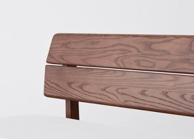 座面の後ろ側の抜けと脚に貫材のない構造。脚長効果をもたらし、すっきりとした佇まいです。