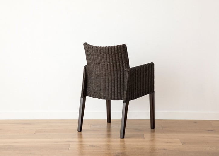 美しい曲線を描く背もたれと後脚とのギャップをつけたデザインによって、月の光が生み出す陰影を表現しているムン・ダイニングアームチェア。陰影を際立たせるため、椅子づくりの職人が1脚1脚丁寧に素材を編み込んでいる極めてデザイン性の高いアームチェアです。
