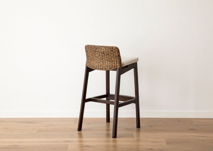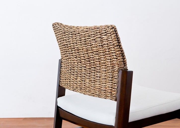 ラタン、ヒヤシンス素材で編み込まれている椅子の背面は、背柱(無垢材)にしっかりと支えられています。